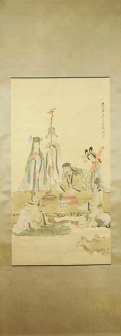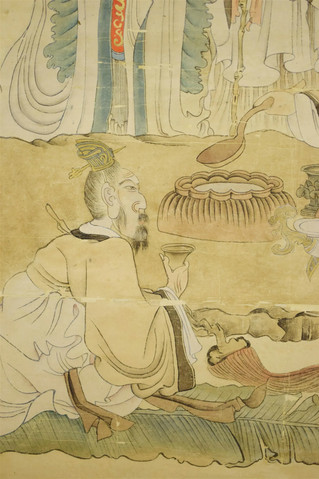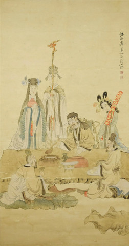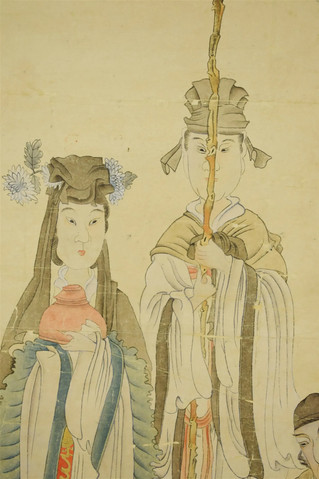 驻:陈洪绶,字章侯,号老莲。明代著名书画家,诗人。一生以画见长,尤工人物画,所画人物驱干伟岸,线条细劲清园。晚年则形象夸张,或变态怪异。其人物画成就,人谓“力量气局,超拔磊落,在仇(英),唐(寅)之上, 盖明三百年无此笔墨“。当代国际学者推尊为”代表十七世纪出现许多有彻底的个人独特风格艺术家之中的第一人“, 堪称一代宗师。
